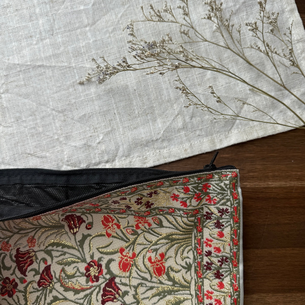 Unsere Tasche „Flower“ bringt mit ihrem floralen Design Leichtigkeit und Charme in deinen Alltag. Ob für dein A5-Notizbuch, dein Koran-Journal oder als hübsche Kosmetiktasche – sie passt sich deinen Bedürfnissen an.