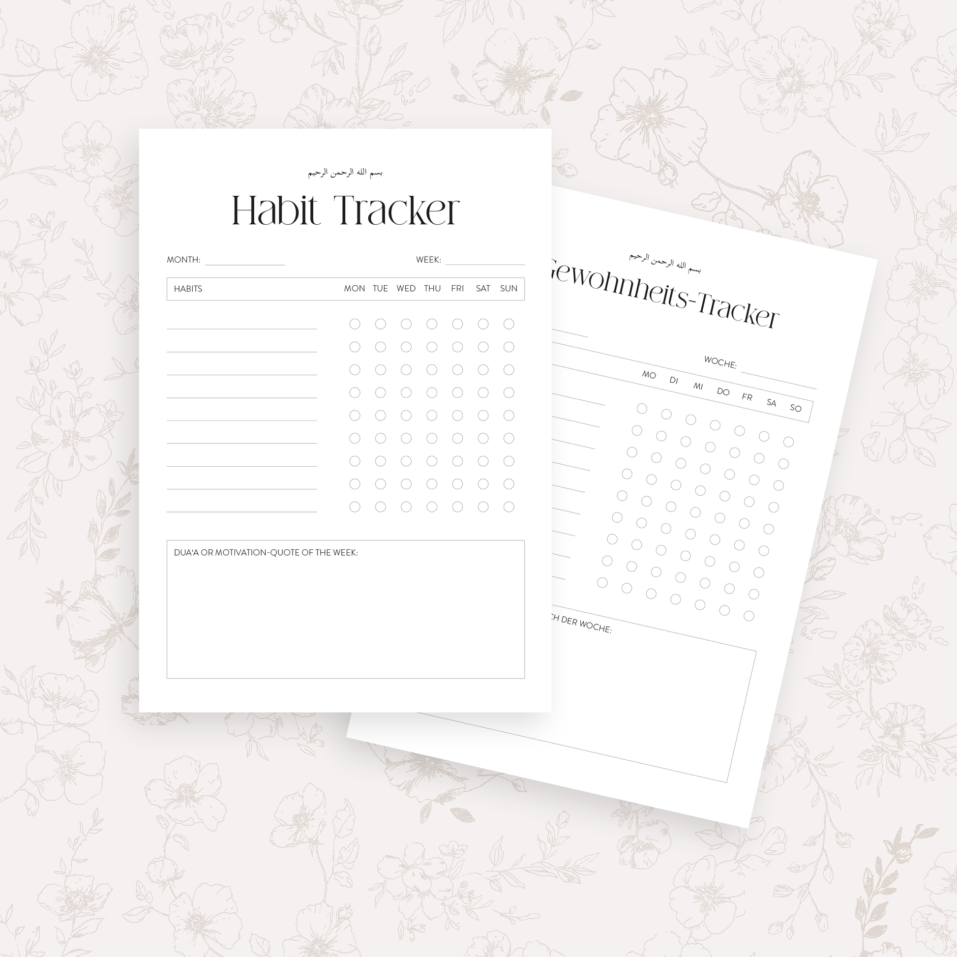 Mit diesem Habit Tracker behältst du deine Gewohnheiten übersichtlich im Blick und startest motiviert in jede neue Woche. Du erhältst die Vorlage in Deutsch und Englisch als PDF zum direkten Download in A4 Version zum ausdrucken oder im iPad Format (1536 × 1960pixel).