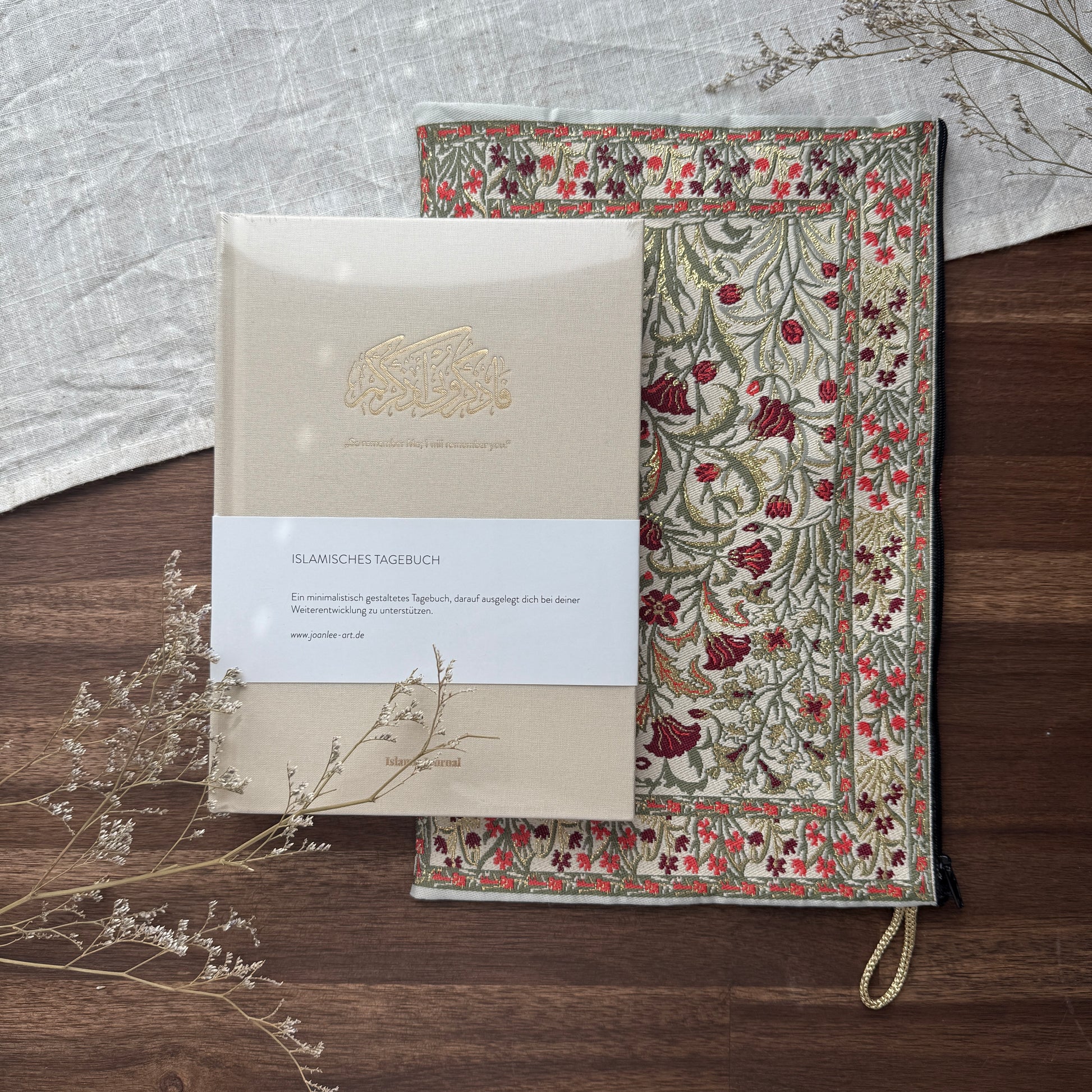 Dieses Tagebuch ist mehr als nur ein Kalender – es begleitet dich dabei, Dankbarkeit, gute Vorsätze und tägliche Reflexion in dein Leben zu integrieren. Gemeinsam mit einer hochwertigen Tasche und deinen (wahlweise) Wunsch-Stickern entsteht ein persönliches Set, das dich durch deinen Alltag trägt und dir Raum für spirituelle Momente schenkt.