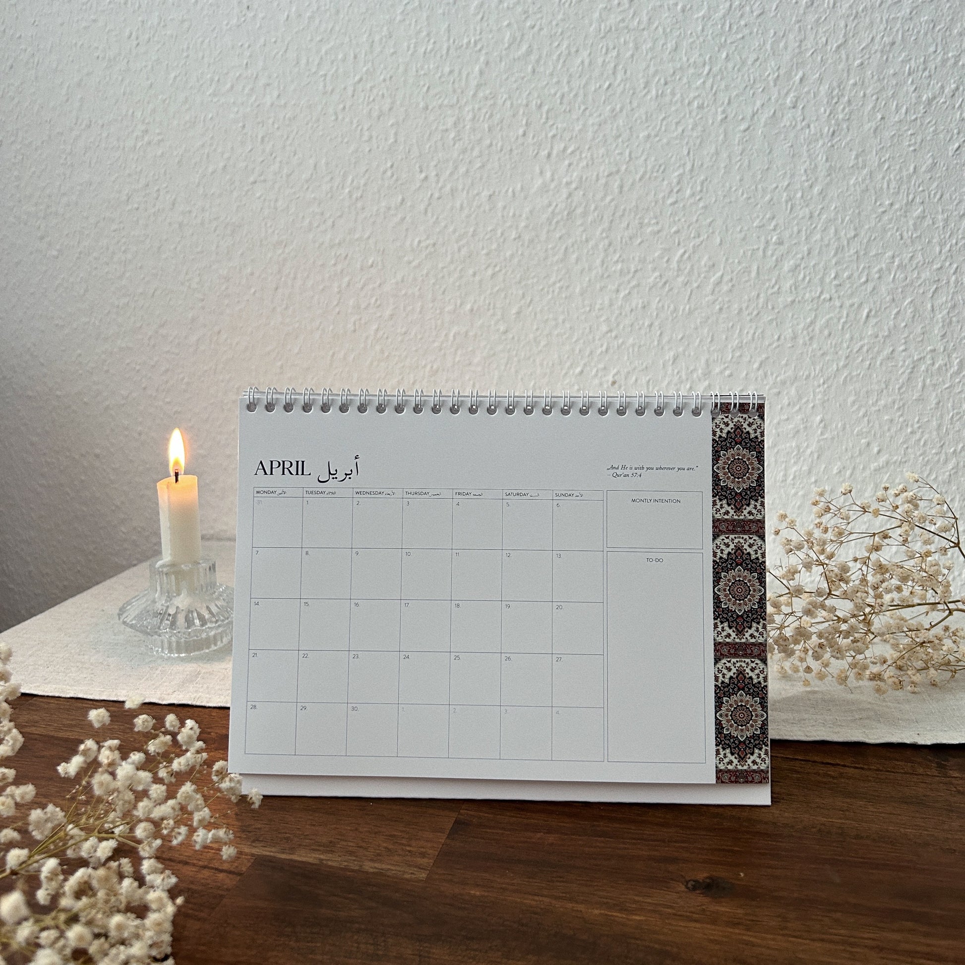 Alle wichtigen Ereignisse kannst du selbst in die einzelnen Kästchen eintragen. Auf jeder Seite findest du einen anderen Qur'an Vers und hast jeden Monat Platz für deine Absicht, die wichtigsten To-Do's