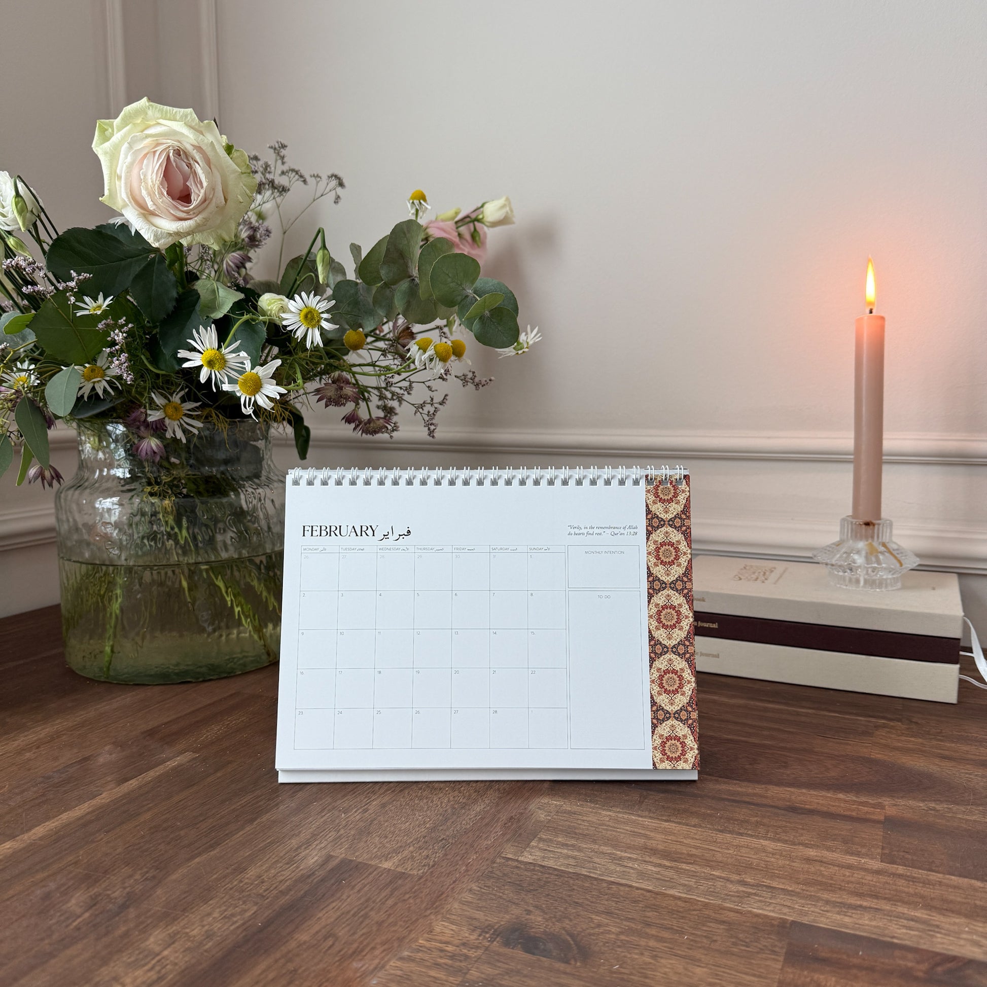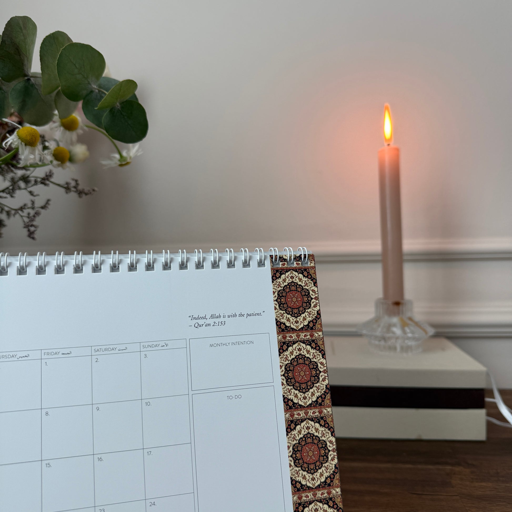 Alle wichtigen Ereignisse kannst du selbst in die einzelnen Kästchen eintragen. Auf jeder Seite findest du einen anderen Qur'an Vers und hast jeden Monat Platz für deine Absicht, die wichtigsten To-Do's.